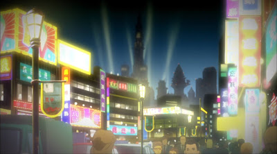 В плане визуала мне анимеха сильно напомнила "Паприку" и "Однажды в Токио" - цветовая гамма местами прям очень похожа. В плане же общего впечатления - это какой-то японский Бэтмен натурально: некая полумифическая жуткая личность, которая защищает жителей города от всякой хреноты по ночам, сам себе и Бэтвинг и Бэтмобиль в одном костюме. Но без Брюса Уэйна.